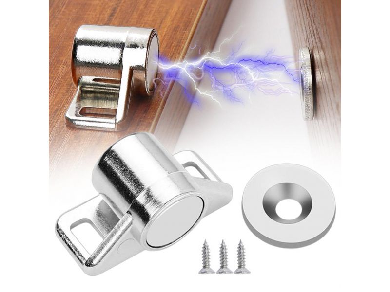 Магнитные защелки, также известные как мебельные магниты, давно стали классикой в мире функциональной мебельной фурнитуры. Они отличаются простотой и эффективностью: состоят из магнита, который крепится в корпус или пластиковый держатель, и металлической пластины, фиксируемой на дверце.