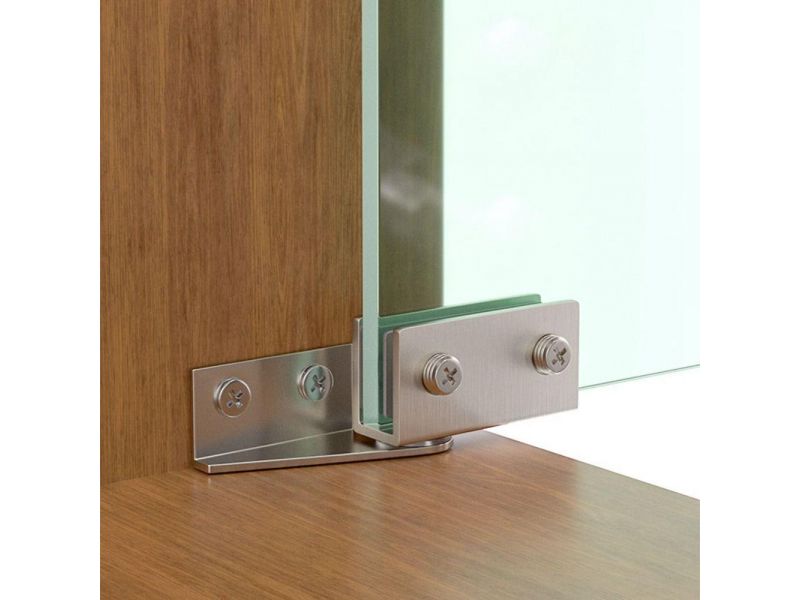Со стеклом не получится обращаться, как с деревом — сверлить, врезать, фиксировать шурупами. Поэтому петли крепятся по-другому: через прижимные пластины с мягкими прокладками, которые плотно «обнимают» край полотна. Такой способ не повреждает материал и равномерно распределяет нагрузку.